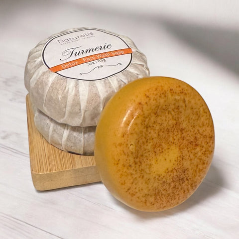 Revitalize your skin with Turmeric Detox Facewash Soap. The natural detoxifying properties of turmeric combine with a gentle cleansing formula to leave your skin feeling refreshed and rejuvenated. Say goodbye to harsh chemicals and hello to a glowing complexion with our 3oz bar!